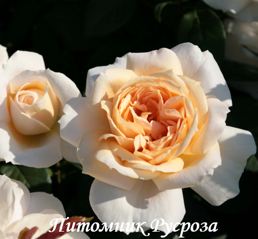 Цветок: розово-белый с янтарно-абрикосовым центром, по мере распускания становится абрикосово-розовым, чашевидный, густомахровый, 65 - 70 лепестков в одном цветке, диаметр цветка 8 см, обладает легким сладким ароматом.