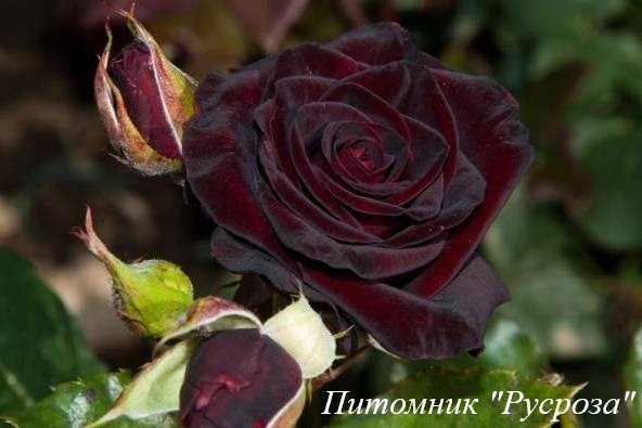 Бутон: черно-красный, бархатистый, бокаловидный, элегантный.