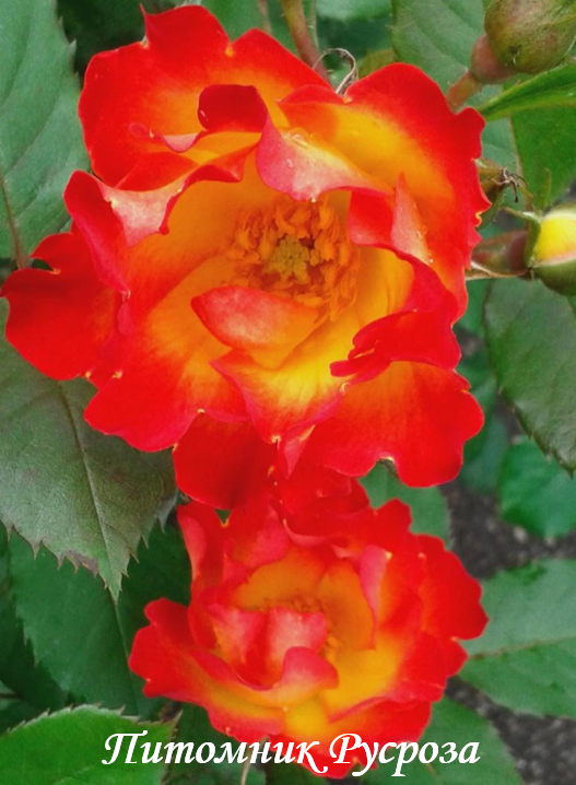 Бутон: желтый с вишнево-красным краем лепестков, яйцевидный.