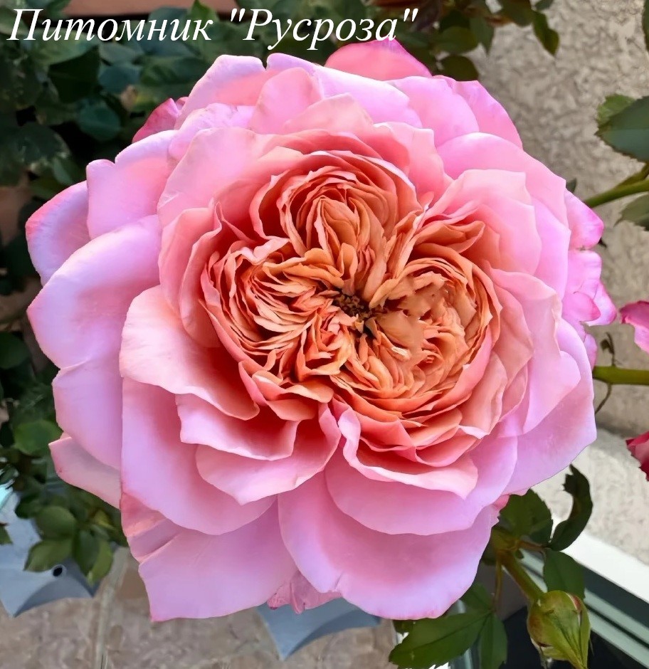 Цветок: розовый с коралловым оттенком, абрикосовым центром, нежно розовыми внешними лепестками и зеленым глазком при полном распускании, розетковидный со звездчатой формой лепестков, очень густомахровый, 100 - 120 лепестков в одном цветке, диаметр цветка 8 - 10 см, обладает очень легким ароматом, долго сохраняет форму, пригоден для срезки.