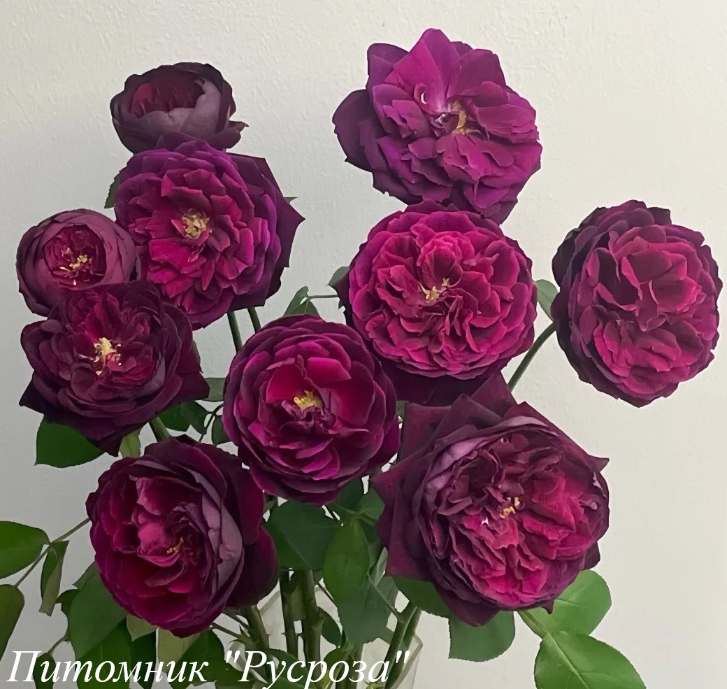 Цветок: ярко фиолетовый с темно-малиновым оттенком и темно-фиолетово-бордовым краем лепестка, осенью почти черные с фиолетовым центром, плоскочашевидный до розетковидного, очень густомахровый, 100 - 130 лепестков в одном цветке, диаметр цветка 8 - 10 см, обладает насыщенным ароматом старой розы, долго сохраняет форму, пригоден для срезки.