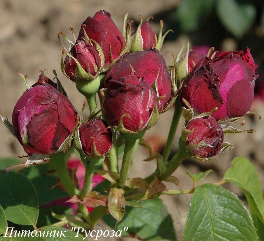 Бутон: темно-красный с черным отливом, яйцевидный.