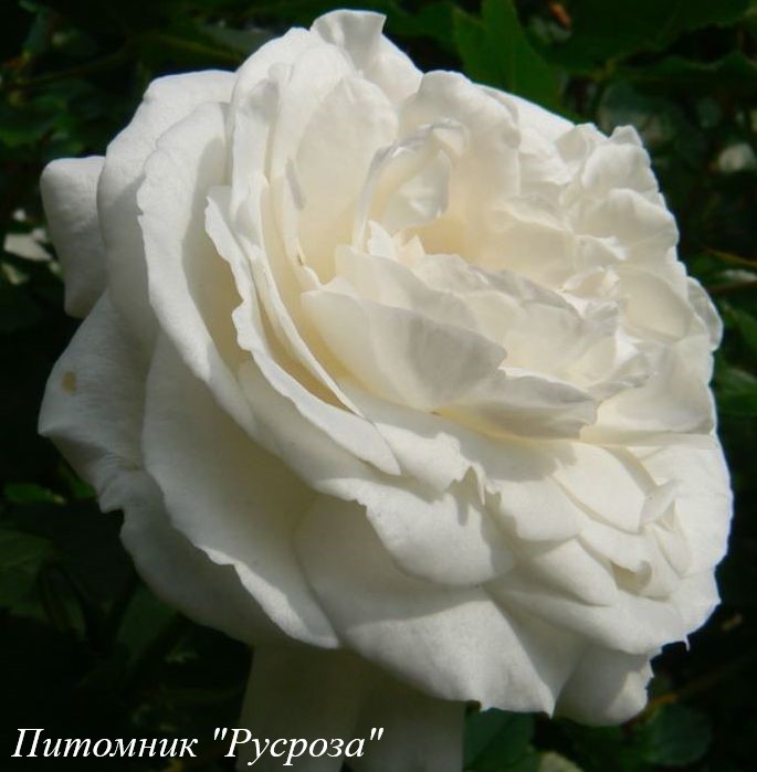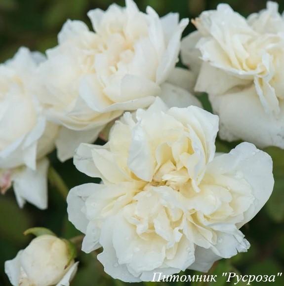 Цветок: белый с желто-кремовым оттенком в центре, розетковидный, густомахровый, 60 – 80 лепестков в одном цветке, диаметр цветка 6 - 8 см, обладает насыщенным фруктовым ароматом.