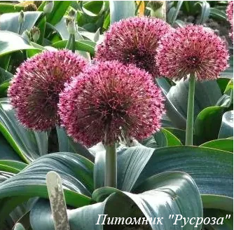 Цветение: в июне, соцветие - зонтик, шаровидное, плотное, крупное, диаметром 10 см, цветок звездчатый, красно-розовый.