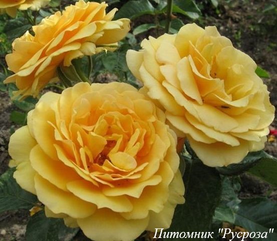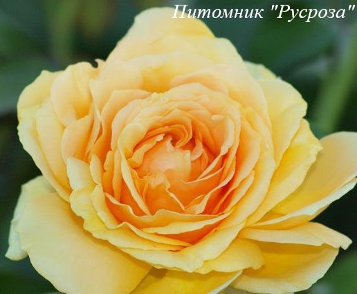 Цветок: желтый с золотистым оттенком и нежно желтыми внешними лепестками, розетковидный, густомахровый, 40 - 60 лепестков в одном цветке, диаметр цветка 6 - 8 см, обладает фруктовым ароматом.