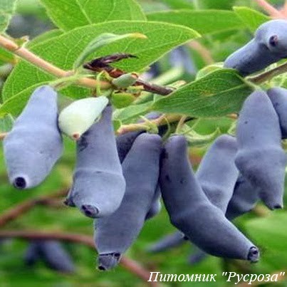 Ягода: крупная и очень крупная, масса 1,2 – 2,3 г, удлинённо-серповидной формы, фиолетово-голубая с сильным сизым налетом, мякоть нежная.