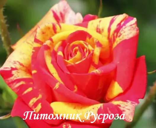 Цветок: красный с оранжево-желтыми штрихами и полосками, чашевидный, с высоким центром, махровый, 20 - 40 лепестков в одном цветке, диаметр цветка 7 - 10 см, обладает насыщенным фруктовым ароматом, долго сохраняет форму, пригоден для срезки, не выгорает.