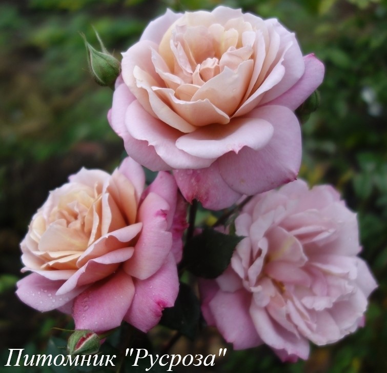 Бутон: темно-розовый с сиреневым оттенком, яйцевидный.