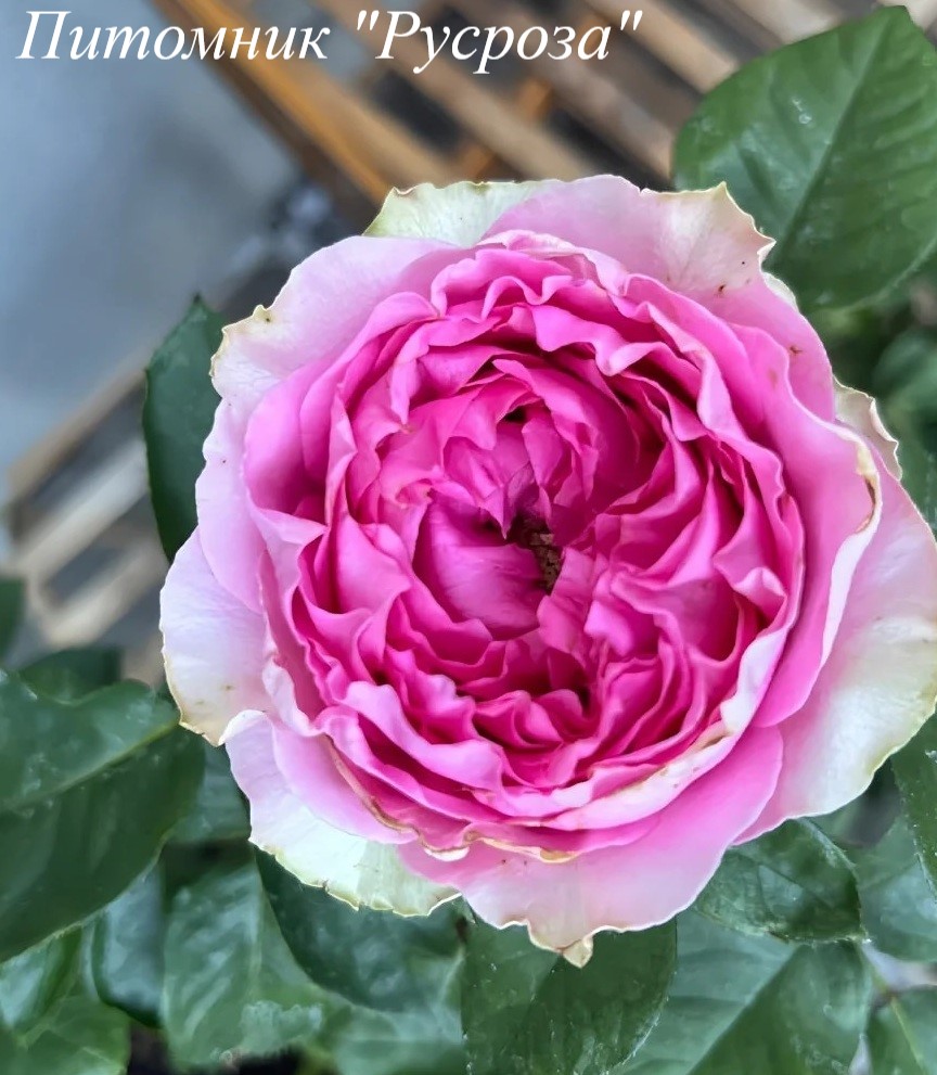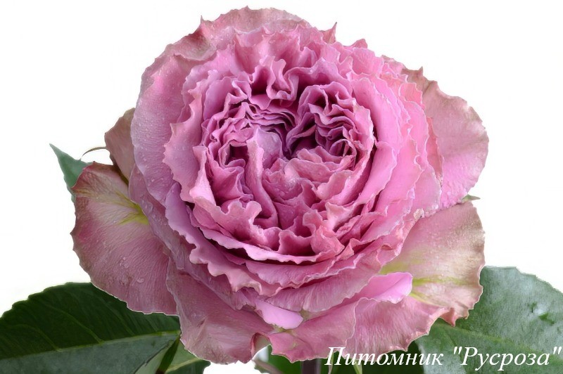 Цветок: розовый с голубовато-синеватым оттенком, зеленым центром и медным оттенком на внешних лепестках, розетковидный с волнистым краем лепестка, густомахровый, 50 - 100 лепестков в одном цветке, диаметр цветка 5 - 10 см, обладает очень легким ароматом, очень долго сохраняет форму, пригоден для срезки, устойчив к неблагоприятным погодным условиям (солнце, дождь, ветер).