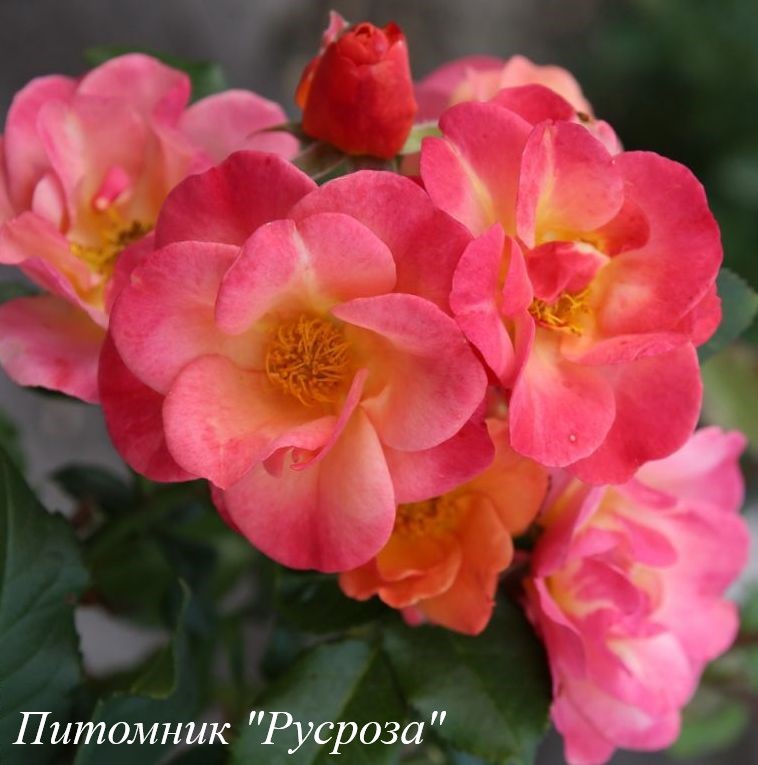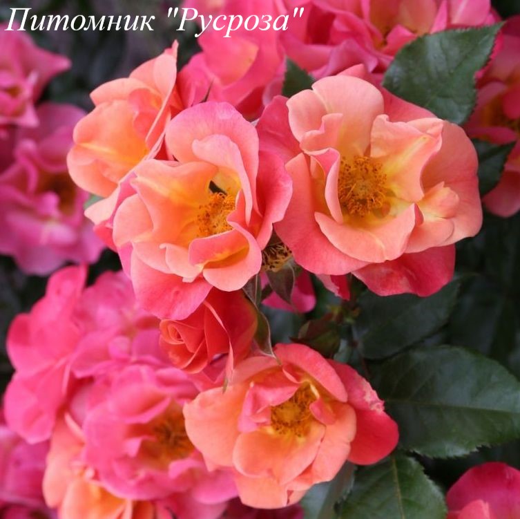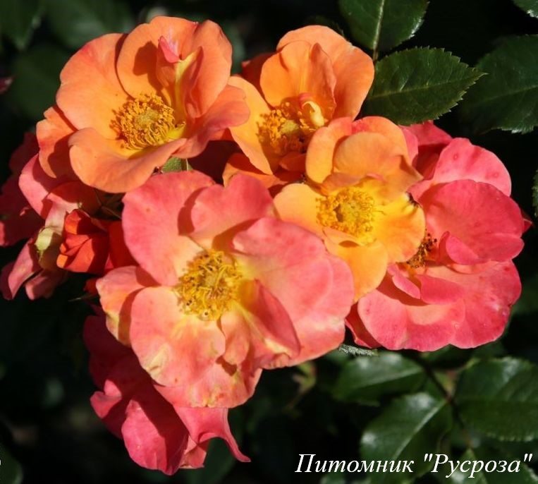 Цветок: оранжево-коралловый с розово-лососевым оттенком и желтыми тычинками, плоскочашевидный, полумахровый, 9 - 16 лепестков в одном цветке, диаметр цветка 5 - 6 см, обладает легким ароматом, устойчив к неблагоприятным погодным условиям (солнце, дождь, ветер), привлекательный для пчел и шмелей.