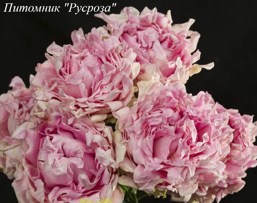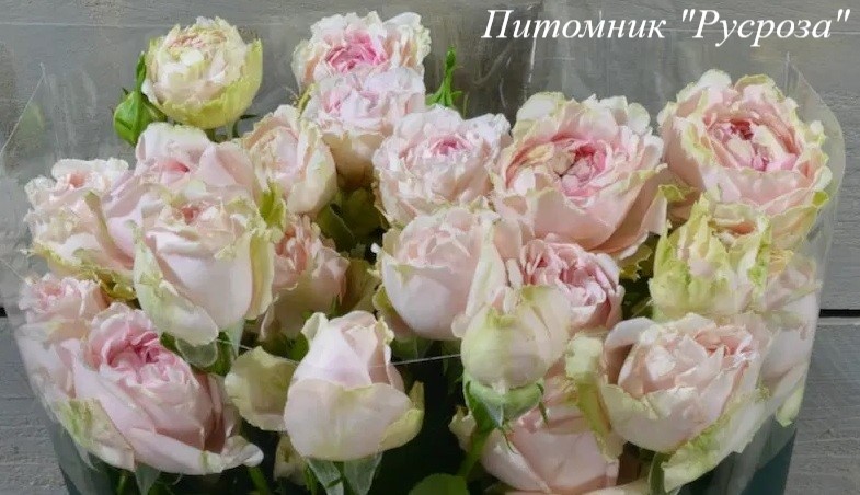 Цветок: бело-розовый перламутровый, чашевидный, с сильно рифленым краем лепестка, густомахровый, 60 - 80 лепестков в одном цветке, диаметр цветка 5 - 7 см, обладает очень легким ароматом, долго сохраняет форму, пригоден для срезки.