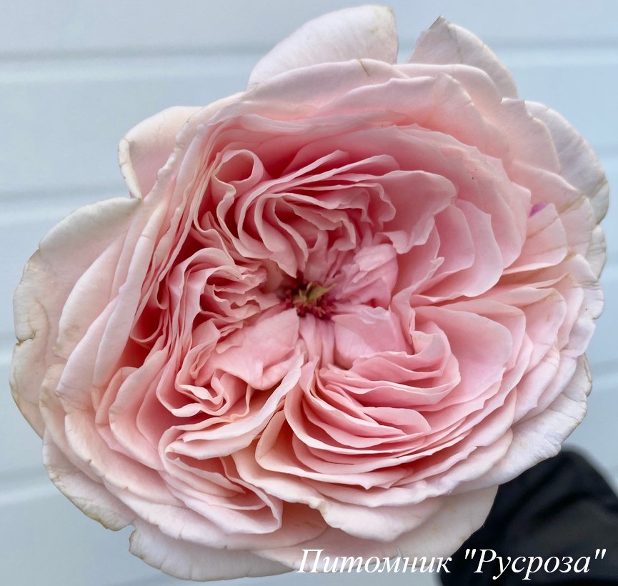 Цветок: нежно розовый с ярко розовым центром и зелёным глазком, по мере распускания становится кремово-розовым с сиреневым оттенком, розетковидный до квадратного, очень густомахровый, 100 - 150 лепестков в одном цветке, диаметр цветка 8 - 10 см, обладает ароматом с нотками яблока, груши, жасмина и цитрусовых, долго сохраняет форму, пригоден для срезки, не выгорает.