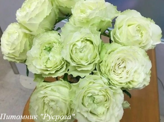 Цветок: кремово-белый с нежно карамельно-розовым центром и салатово-зелеными внешними лепестками, с понижением окружающей температуры цветок становится более зеленым, чашевидный до шаровидного, махровый, 25 - 40 лепестков в одном цветке, диаметр цветка 6 - 9 см, обладает насыщенным ароматом с нотками зеленого чая.