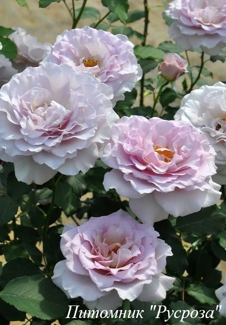 Цветок: нежно абрикосово-сиреневый, по мере распускания становится сливочно-кремовым, розетковидный с волнистым краем лепестка, махровый, 25 - 40 лепестков в одном цветке, диаметр цветка 10 - 12 см, обладает насыщенным ароматом, долго сохраняет форму, пригоден для срезки.