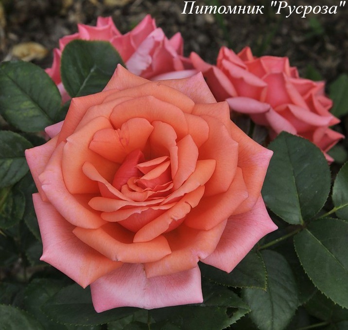 Цветок: темно-розовый перламутровый с лососево-коралловым оттенком, чашевидный, с высоким центром, густомахровый, 40 - 60 лепестков в одном цветке, диаметр цветка 10 - 12 см, обладает легким сладким ароматом, долго сохраняет форму, пригоден для срезки, устойчив к неблагоприятным погодным условиям (солнце, дождь, ветер).
