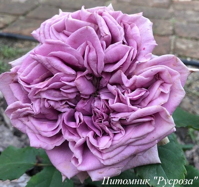 Цветок: сиренево-фиолетовый с красноватым оттенком, чашевидный с волнистым краем лепестка, густомахровый, 80 - 100 лепестков в одном цветке, диаметр цветка 7 - 10 см, обладает насыщенным цитрусовым ароматом, устойчив к дождю.