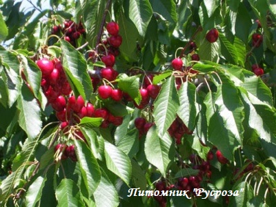 Плоды: крупные (4-5 г.), овально-круглые. Мякоть плотная, сочная, кремового цвета. Отрыв ягоды от плодоножки сухой. Косточки легко отделяются от мякоти.