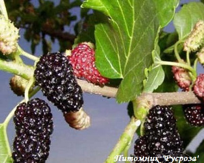 Плоды: крупные (длиной до 5 см), цилиндрические, тёмно-фиолетовые.